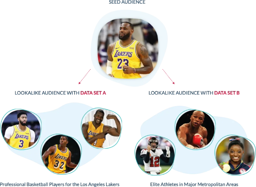 Suppose you run a lookalike model using data set A. In that case, the model will prioritize identifying other pro basketball players who’ve played for Los Angeles Lakers, like Magic Johnson, Shaquille O’Neal, and Anthony Davis.