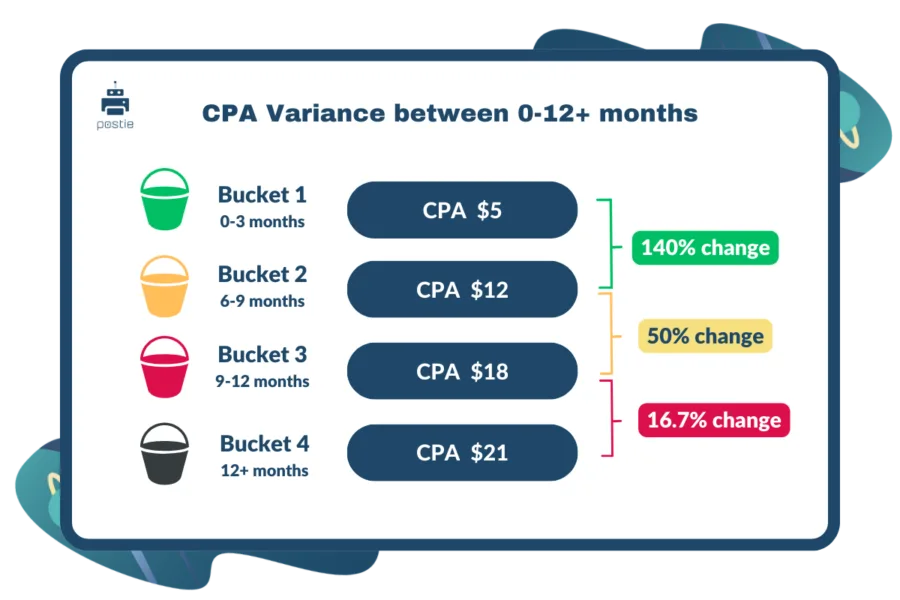 If you group your customers into buckets based on when they made their last purchase, you can begin to send strategic campaigns to those audiences and measure the CPA associated with re-acquiring those customers.